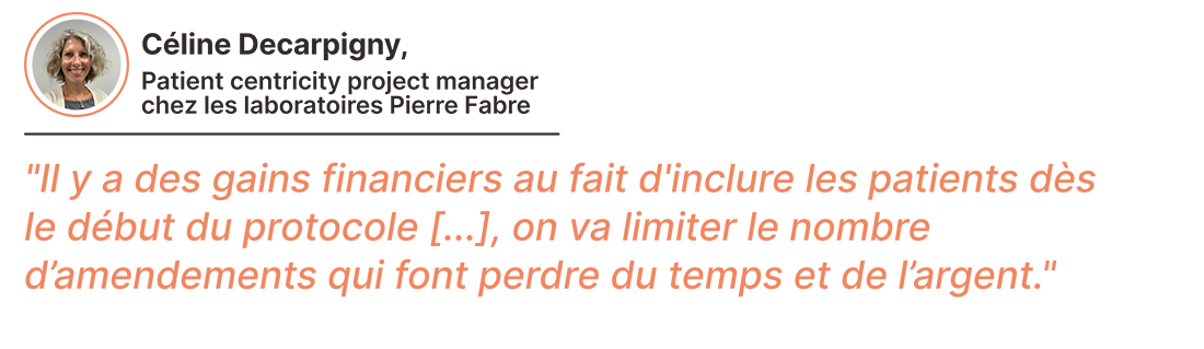 Pour Céline, l'engagement patient dépasse le cadre de l'image de marque. C'est un levier d'efficacité. Elle rappelle que la relecture des protocoles cliniques par des patients, en amont, permet d'éviter des amendements ultérieurs et de faciliter le recrutement dans les essais.