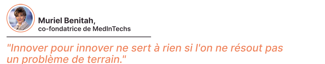 Muriel Benitah n'est pas issue du milieu médical. Ancienne banquière spécialisée dans l'innovation technologique, elle a capté, il y a cinq ans, un "signal faible" : la santé vivait sa révolution numérique, mais restait prisonnière de structures archaïques, et d’un décalage croissant entre innovation technologique et capacité réelle d’appropriation sur le terrain.
